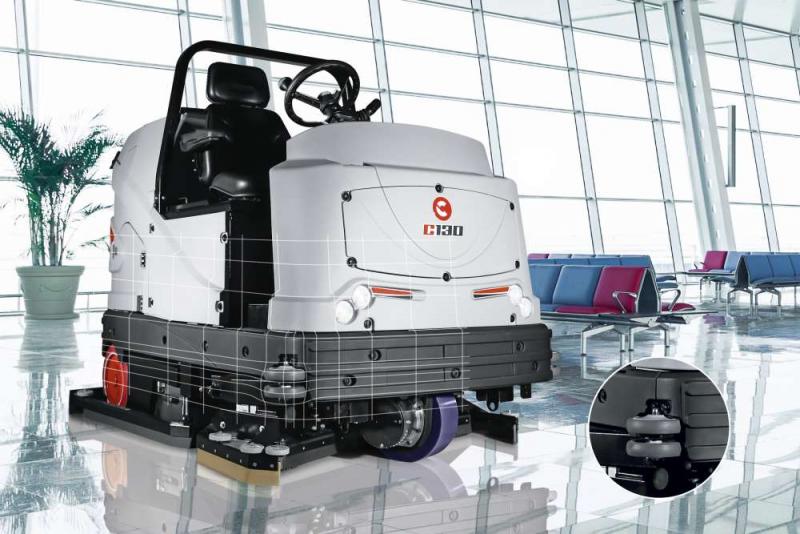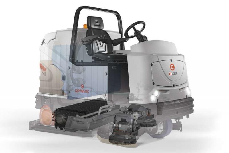 C130 är en batteridriven skurmaskin , har 4 motroterande borstar för att effektivt skura golvet med ett justerbart tryck på upp till 180 kg och en cylindrisk borste för att samla smuts i den löstagbara behållaren. Dubbel rengöring längs hela 130 cm arbetsbredd är således säkerställd . Trots sin storlek, är maskinen lättmanövrerad och användarvänlig.