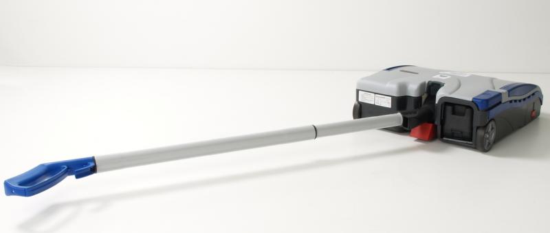Smidig batteridriven borstvalsdammsugare som kan användas till heltäckningsmattor men också lämplig för hårda golv .