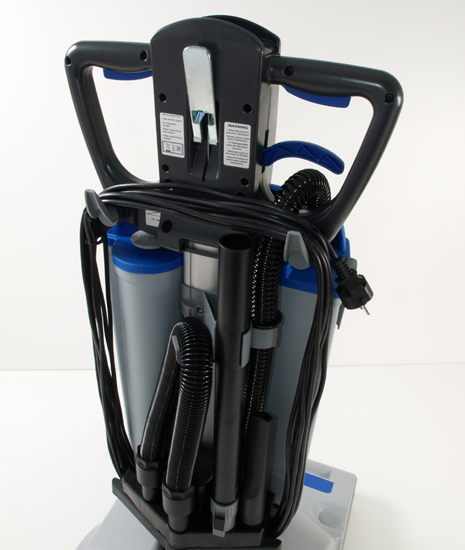 Maskinen har en Sopbehållare på 16 liter och en 15 meter lång elkabel
